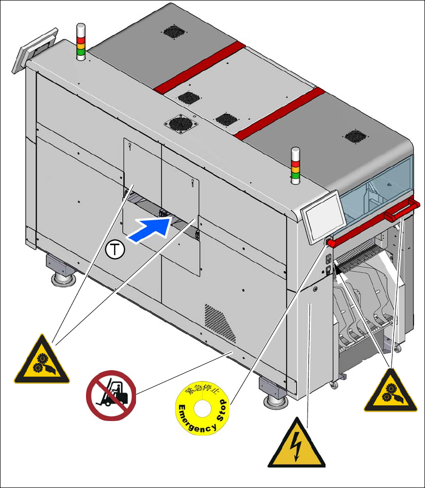 Abb. 2.2 - 6 Warnschilder im Bestückautomaten (Beschilderung für China, Beispiel SIPLACE TX2i )