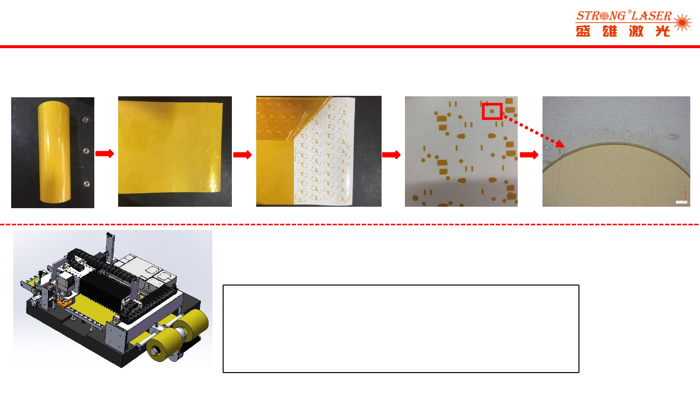 对照原始CAD图纸,机台软件能够计算补偿柔性薄膜材料压合时热导致的变形, 实现单片、不同厚度尺寸涨缩补偿。 3.2. 电路板 LCP 5G天线切割 FPC外形切割 柔性材料加工