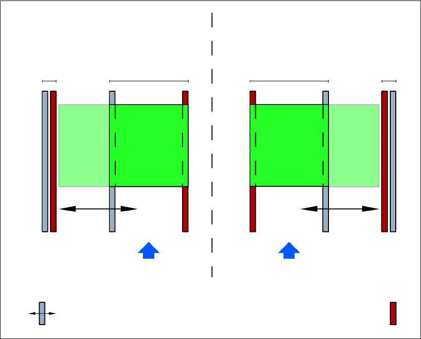 동기 모드에서는 크기가 같은 PCB 두 개가 동시에 실장 위치로 이동합니다 . 이들은 공통 패널로