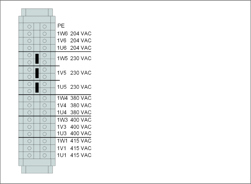 → 따라서 단자 블록 ( 그림 4.2 - 5) 에서 , 3 상 변압기 T1 의 1 차 측면이 각 공급 전압에 대해