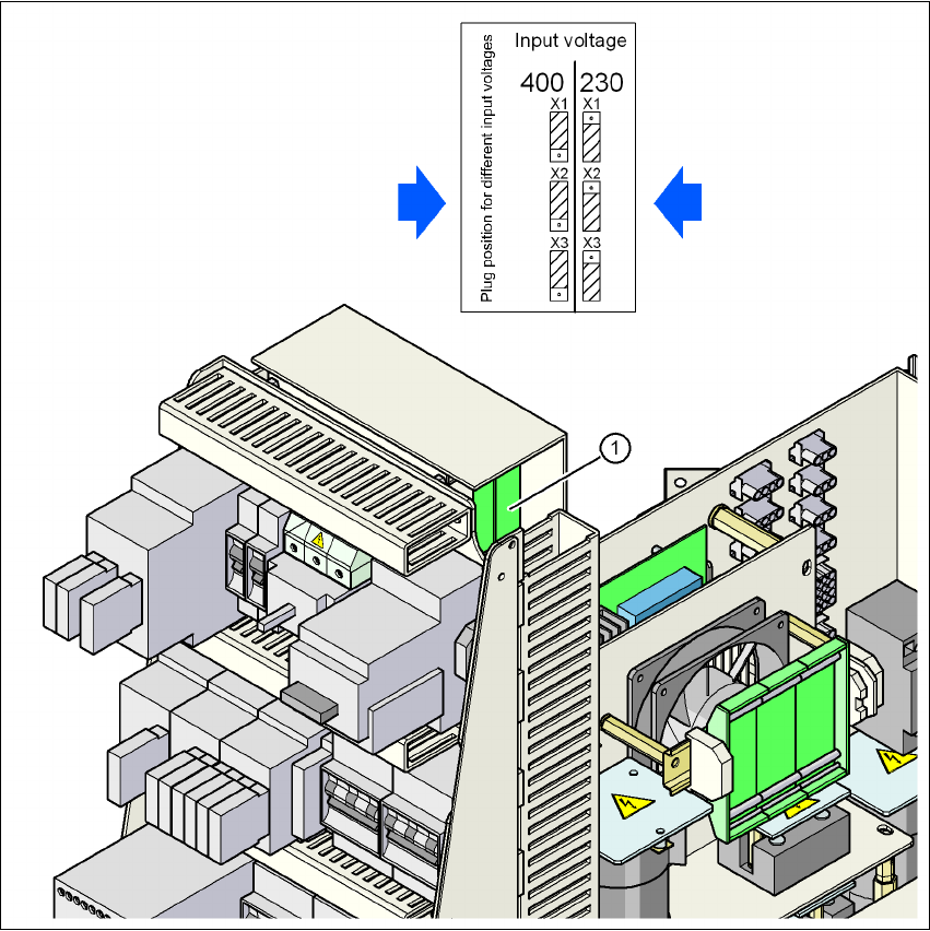 → 따라서 단자 블록 ( 그림 4.2 - 5) 에서 , 3 상 변압기 T1 의 1 차 측면이 각 공급 전압에 대해