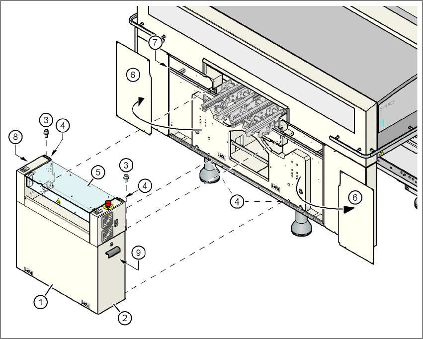 사용자 매뉴얼 SIPLACE X-S eries 4 셋업 및 작동 소프트웨어 버전 SR.605.xx 2008 년 7 월 한글판 4.3 실장기 셋업 281 → 입력 컨베이어 (28 0 페이지에 있는 그림 4.3 - 14 의 항목 1) 에서 케이블 커버 (280 페이지 에 있는 그림 4.3 - 14 의 항목 3 과 5) 를 벗겨냅니다 . → 이 레일 (280 페이지에 있는 그림 4.3 - 14 의…