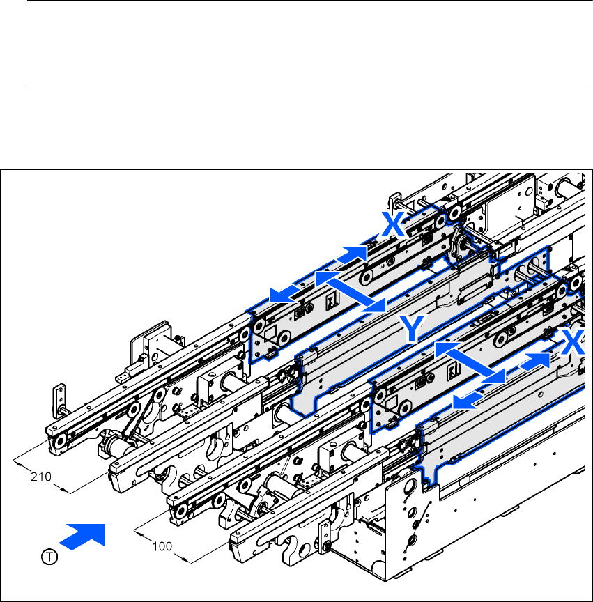 → 장비의 수평계를 실장 영역 1 의 X 방향과 Y 방향 모두로 PCB 컨베이어의 레일에 놓습니다