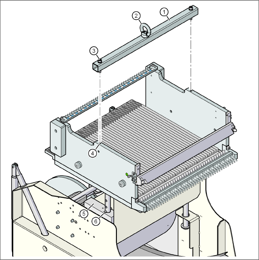 → 분할핀이 지지 블록 ( 그림 4.4 - 2 의 5 번 항목 ) 에 놓이도록 컴포넌트 트롤리 베드를 천천