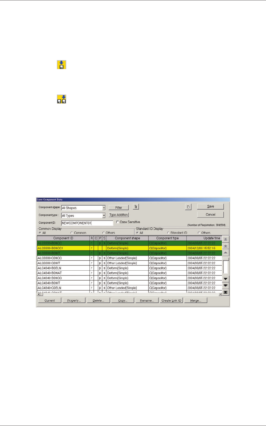 (3) When the [Save As] icon is pressed, the following "Save Component