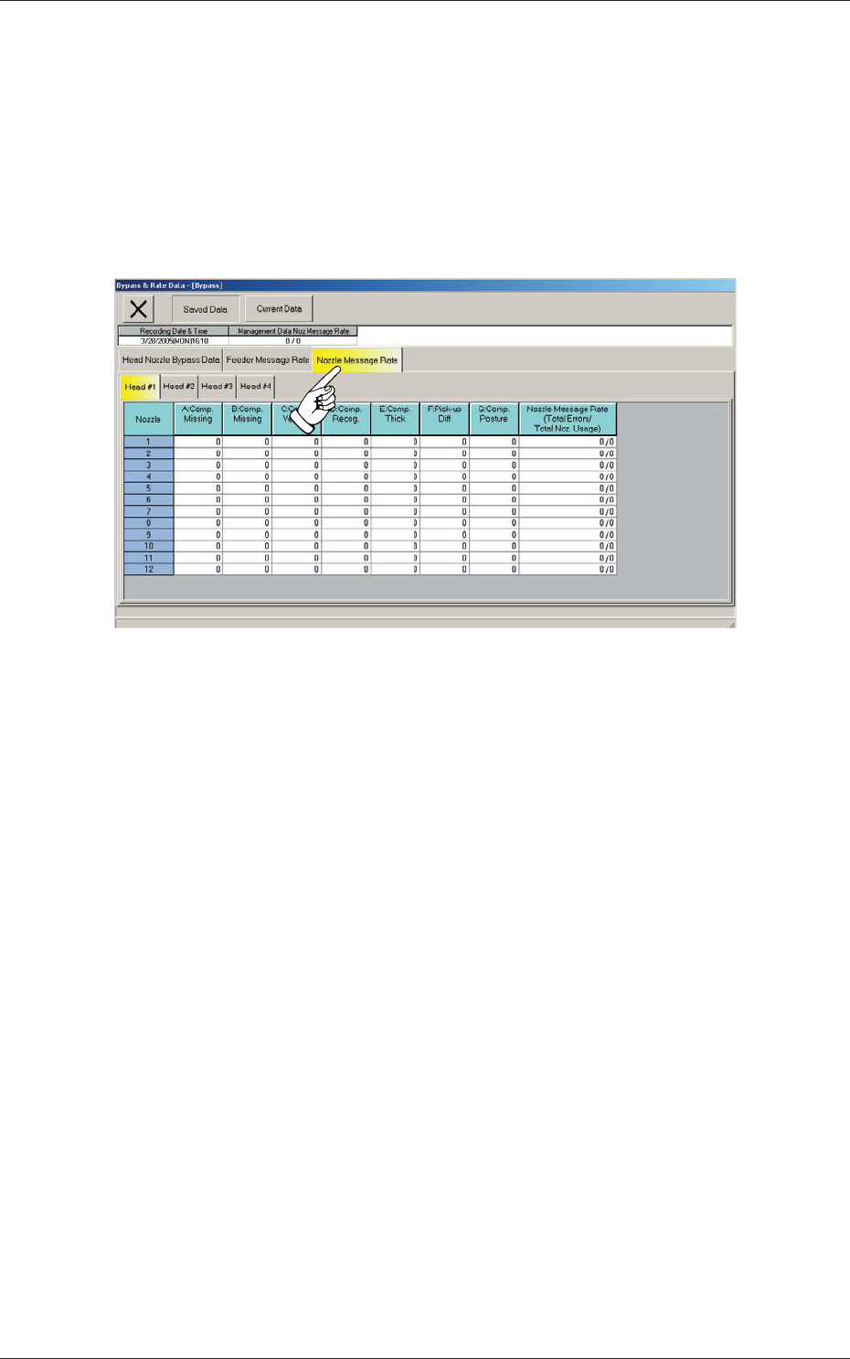 When the "Nozzle Message Rate" tab is pressed in the "Bypass & Rate Data