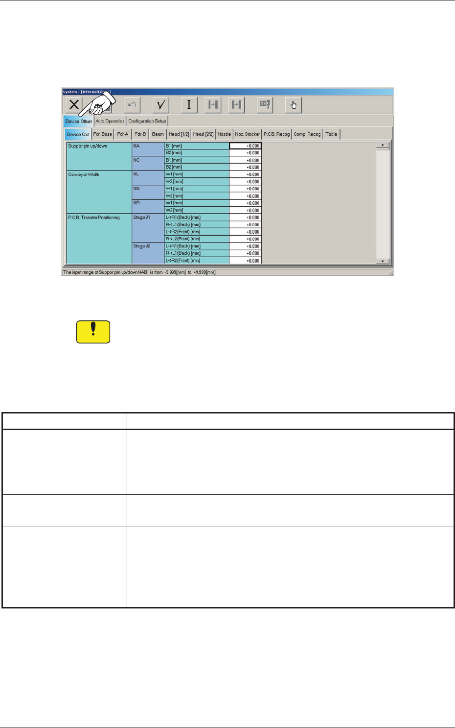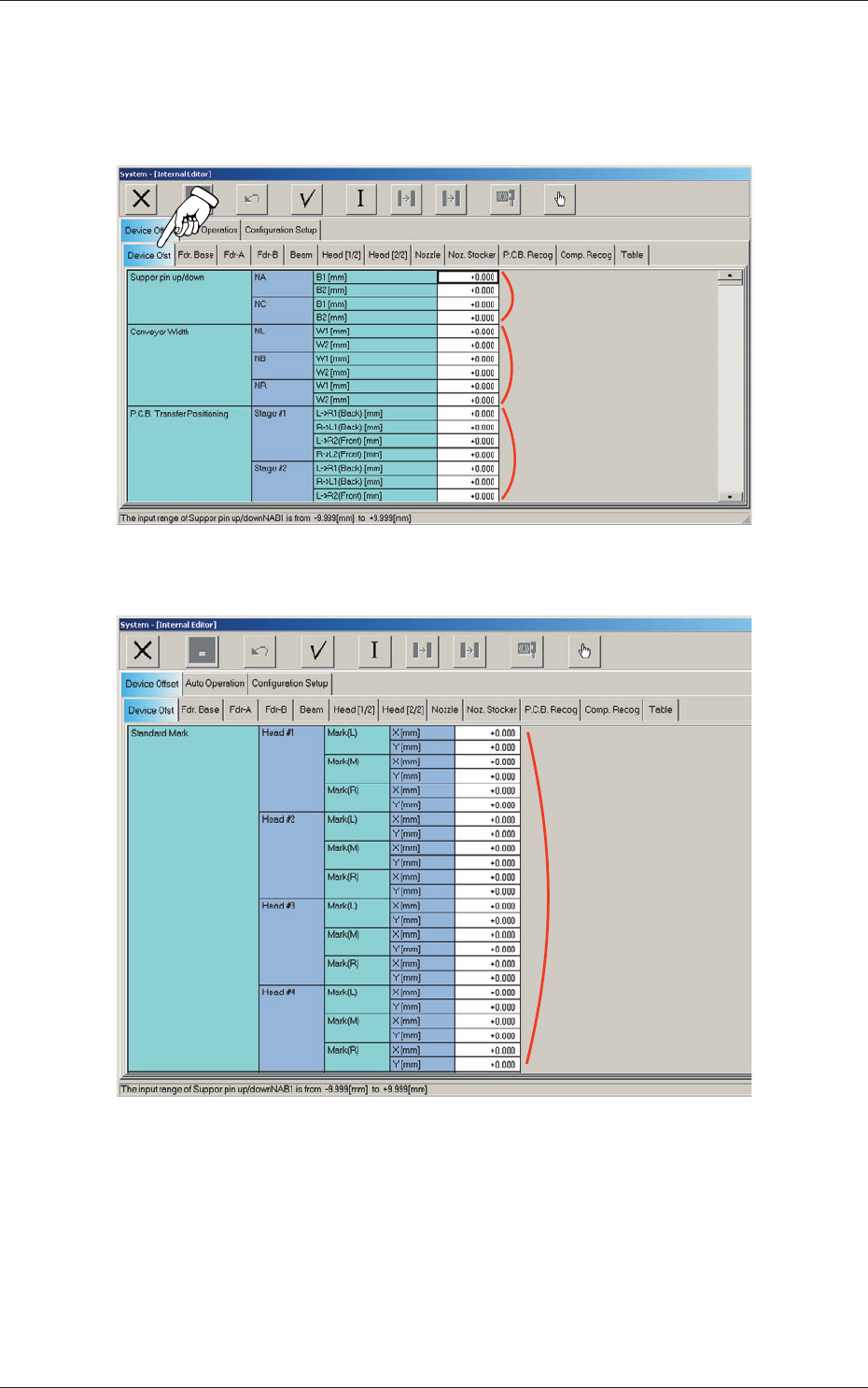 When the "Device Offset" tab is pressed in the "System - [Internal Editor]"