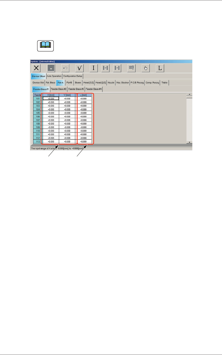 6-13 AIVEDT -ID 2.1.3 Feeder Offset A and Feeder Offset B When the "Fdr-A" or the "Fdr -B" tab is pressed in the "Device Offset" tab sheet, the corresponding tab sheet appears as shown below…