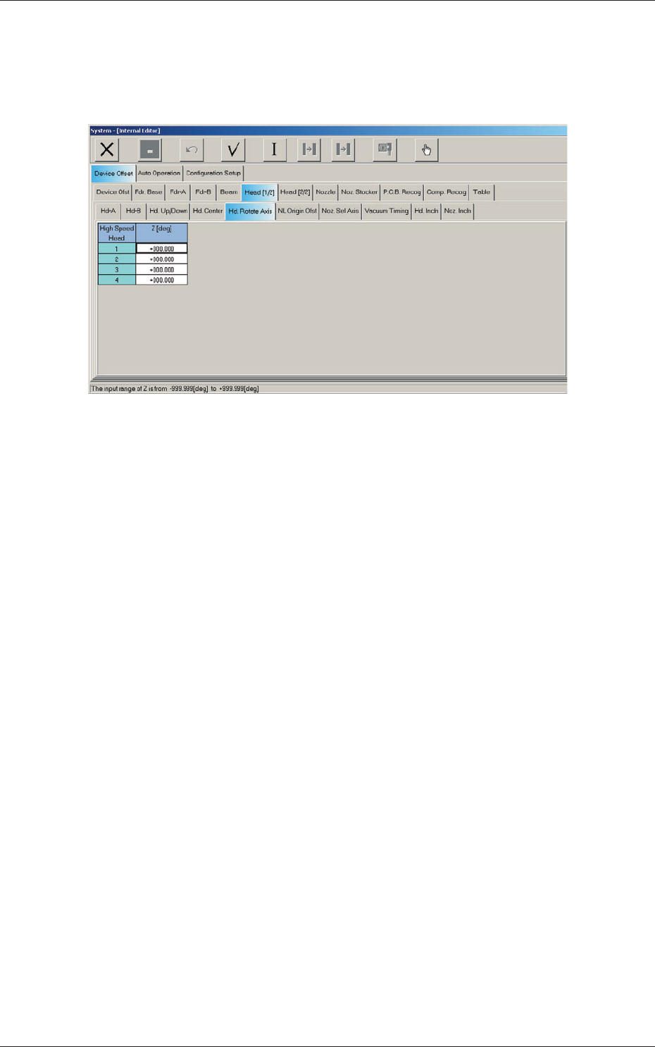6-25 AIVEDT -ID 2.1.9 Head Rotational Angle Axis Offset When the "Head [1/2]" tab is pressed in the "Device Offset" tab sheet and the "Hd Rotate Axis" tab is selected, the following tab shee…