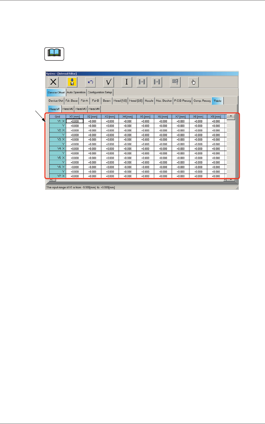 6-51 AIVEDT -ID 2.1.24 T able Offset When the "T able" tab is pressed in the "Device Of fset" tab sheet and the "Head #1" tab is selected, the following tab sheet appears. Note As for the &q…