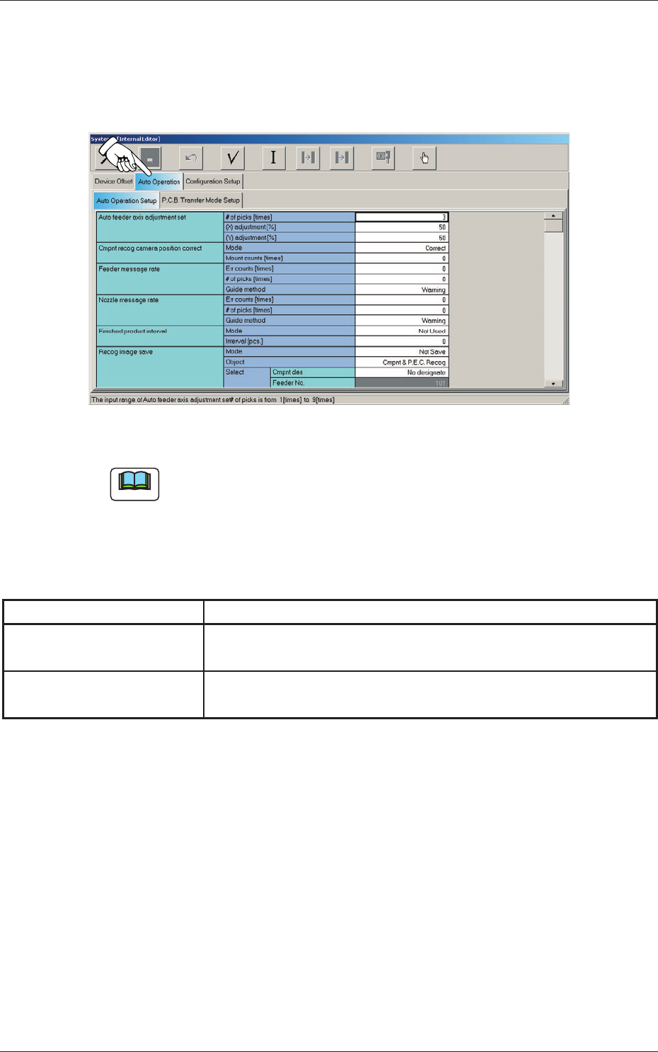 When the "Auto Operation" tab is pressed in the "System - [Internal Editor]"