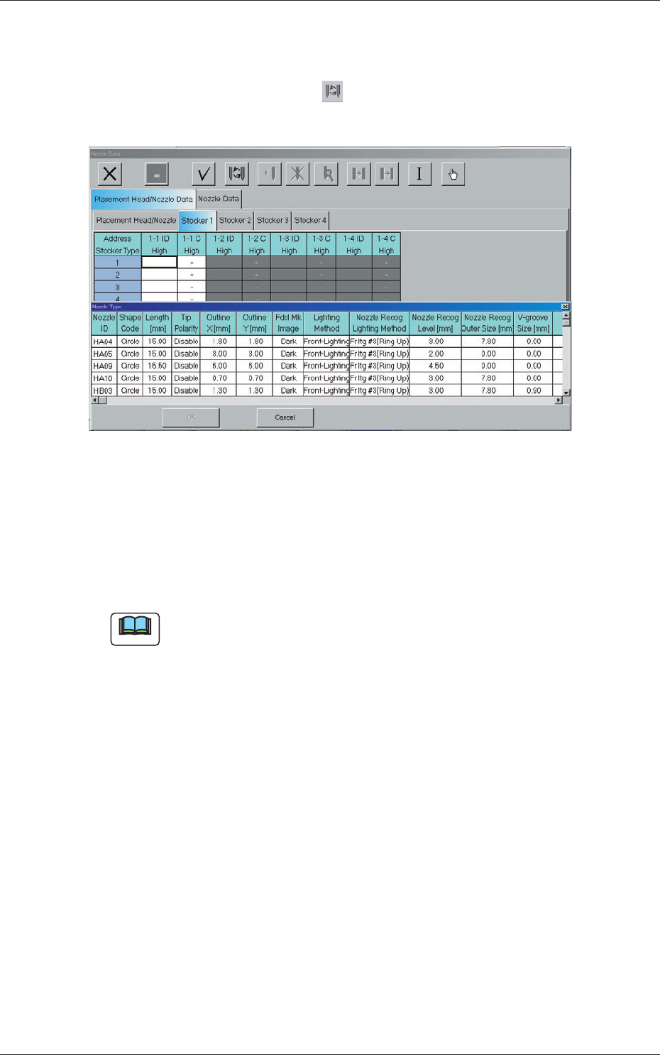 When an arbitrary nozzle ID is selected and the " " icon is pressed,