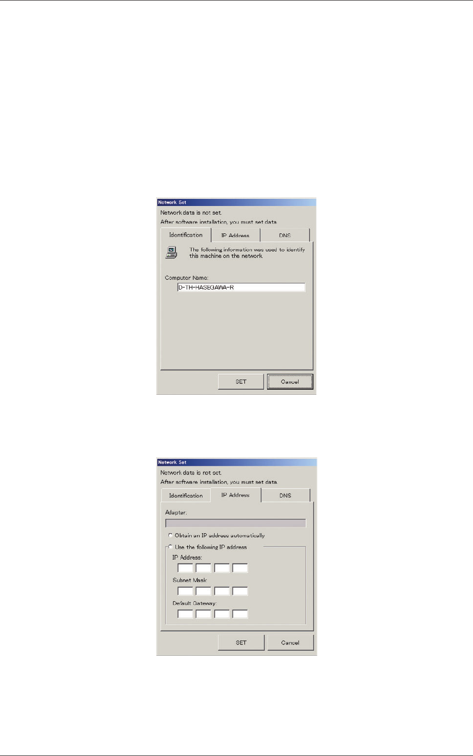 Fig. 3F85 "Network Set" Window ("IP Address" Tab Sheet)