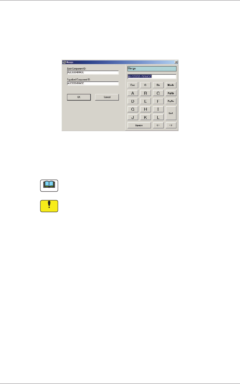 4-10 AKFEDT -ID 0606-009 1.2.6 Merging the Component ID (1) Select the desired root component ID. The selected component ID turns blue, indicating that it is selected. (2) Press the [Merge...] button. The "Merge&quo…