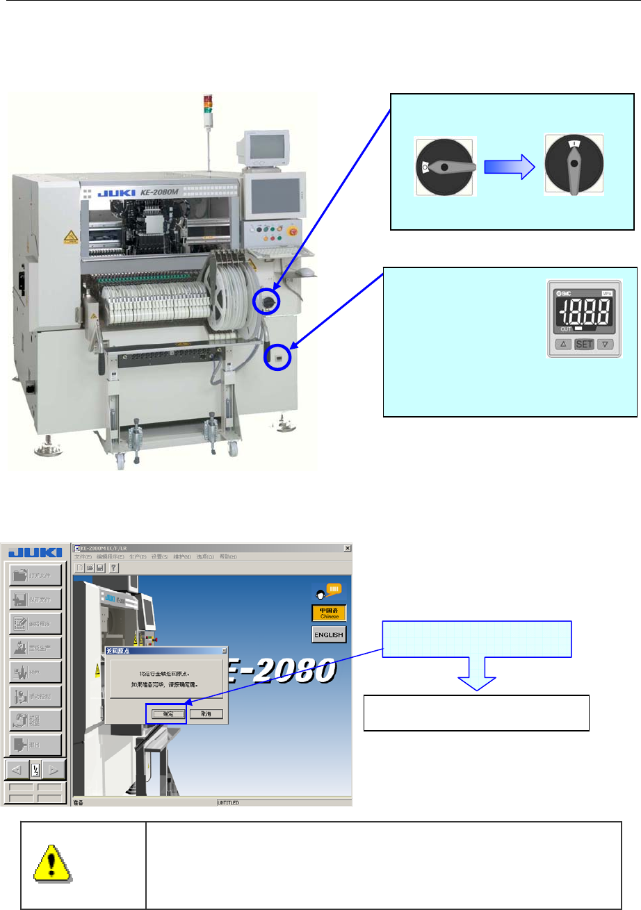 执行返回原点时装置即开始运行。为避免受伤,请绝对不要把手和头部