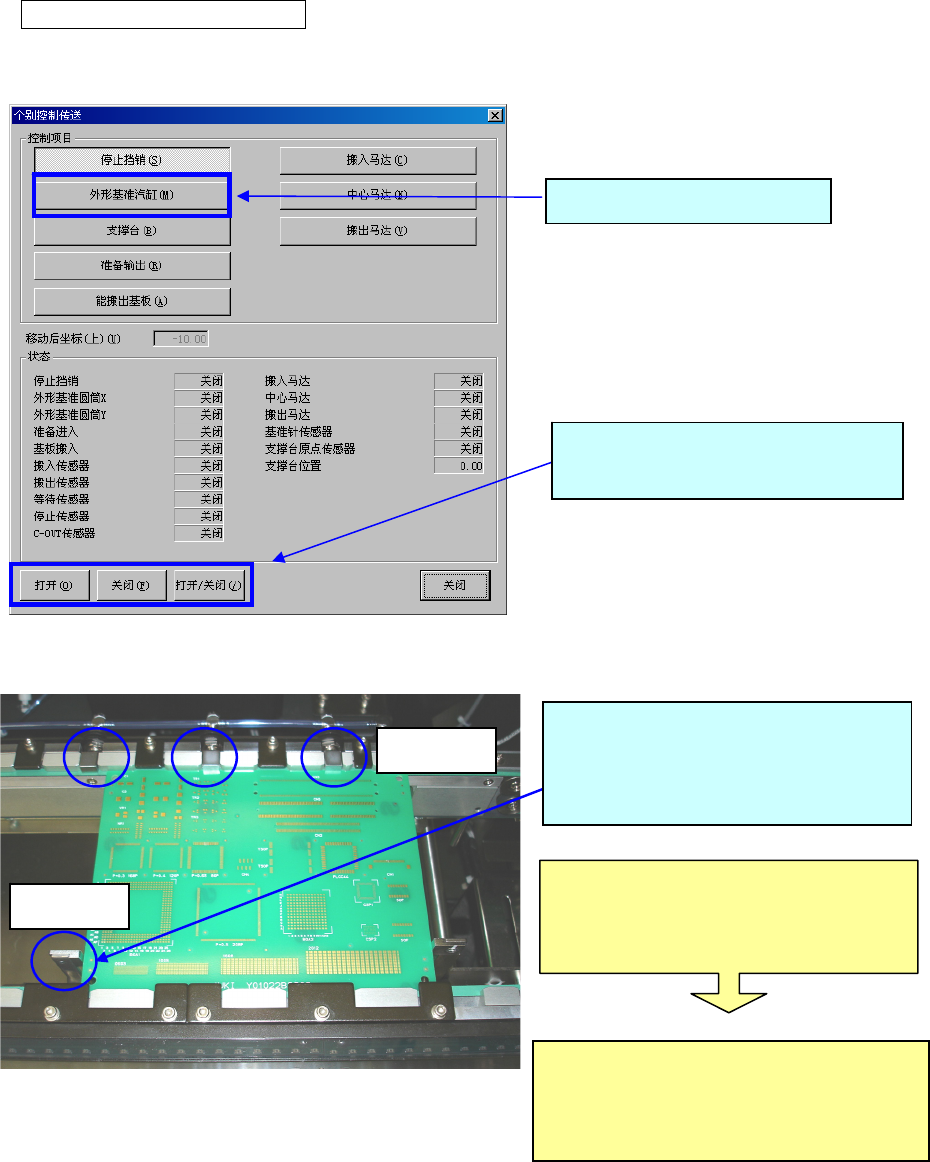 ①在个别控制传送画面上选择「外形基准汽缸」,运行夹杆X和夹杆Y。