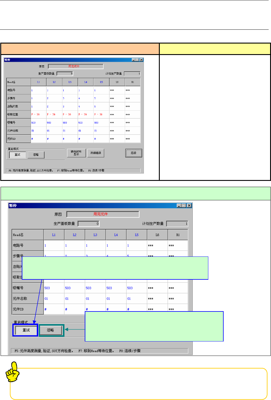 3-2 用完元件(操作选项中未选中“无元件暂停”时)