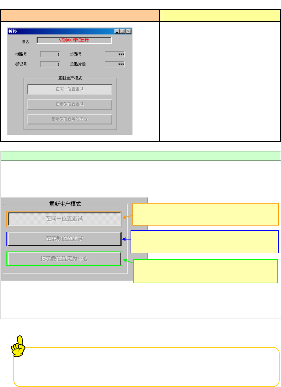 1) 遇到「激光脏污错误」时,贴片头将移动到前面后暂停。