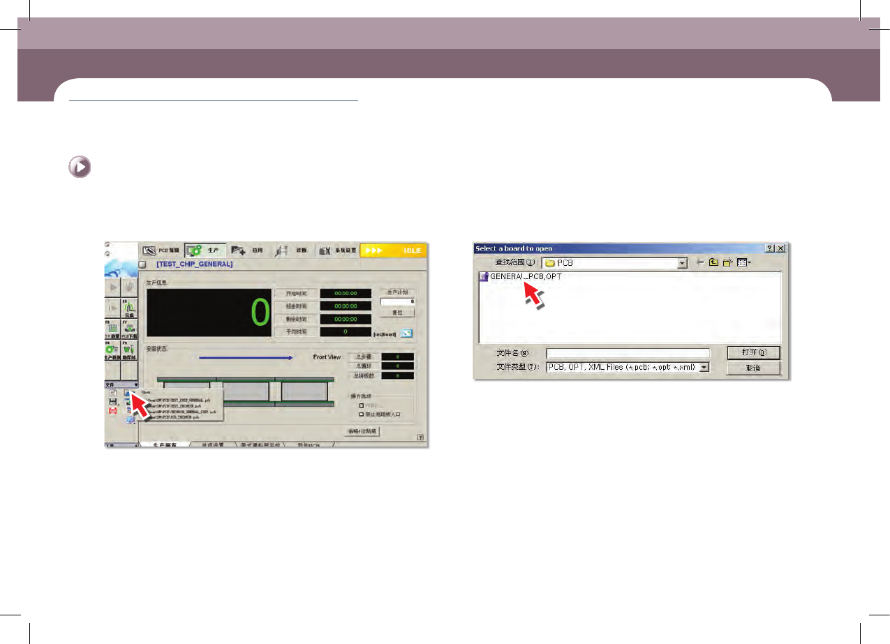 Operation Handbook 3 -7 Chap ter 3 本 Chapter 主要介绍生产作业顺序 生产 准备生产 Ⅱ > PCB文 件的载入 (Dow n l oa d) 准备生产 Ⅱ Step 3. 点击 ' 打开 ' ㆍ 点击图标则显示子菜单。 Step 4. 选择 PCB 文件 ㆍ 选择要作业的 PCB 文件 , 下载 PCB 文件。