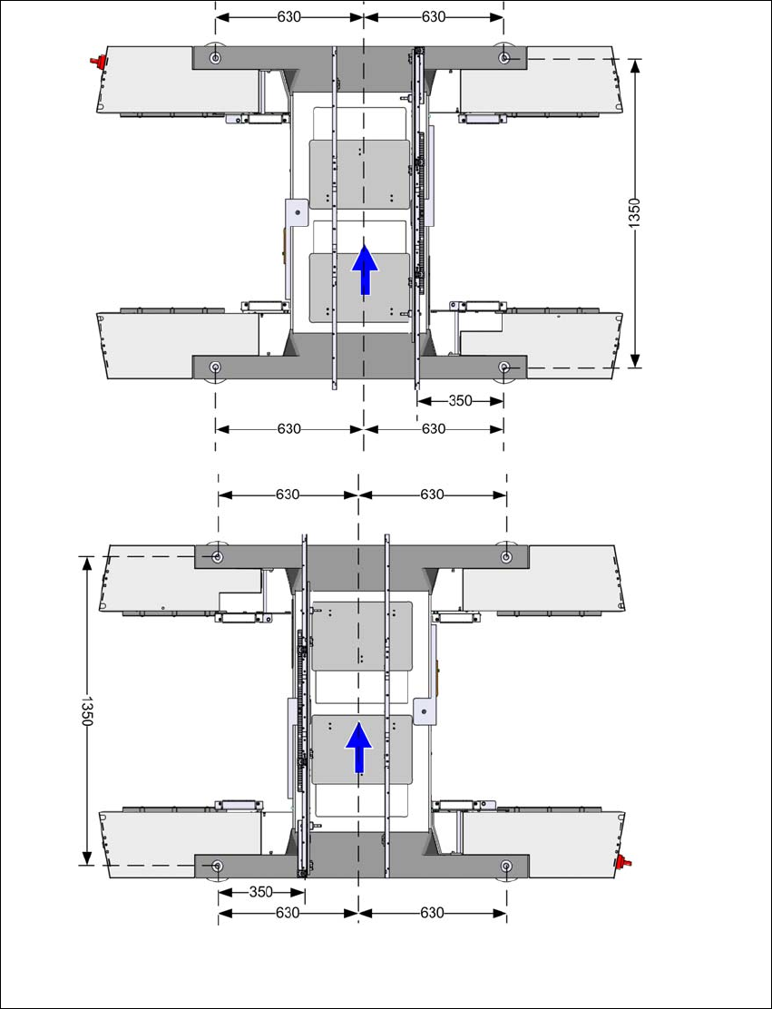 Fig. 4.3 - 5 Cotes d'écartement des pieds de la machine du convoyeur simple de CI en millimètres