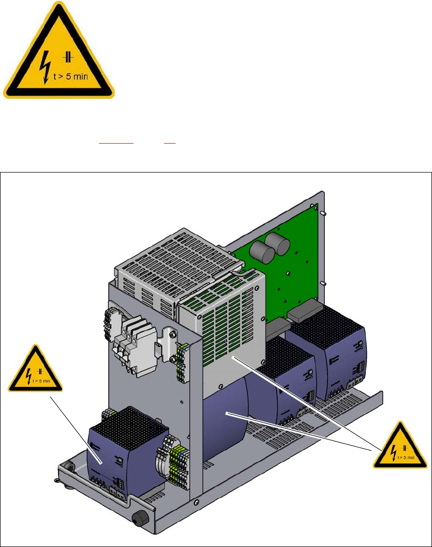 secteur et attendre 5 minutes jusqu'à ce que les condensateurs se