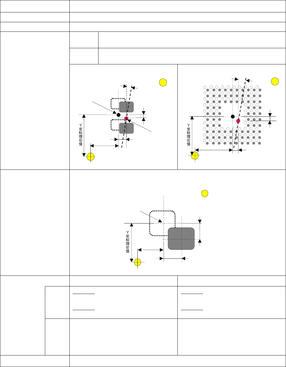 计测焊盘位置,X 方向(补正量 dx)、Y 方向(补正量 dy)、角度方向(补正量 d