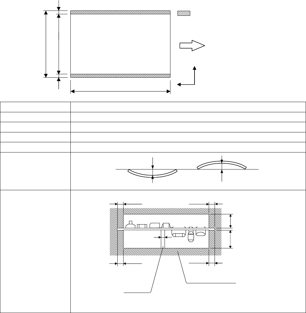 VM-101 2018.0520 - 63 - 7. 印刷基板设计基准 7.1 印刷基板规格概要 项 目 规 格 基板尺寸 50 × 50 mm ~ 330 × 250 mm 贴装可能范围 50 × 44 mm ~ 330 × 244 mm 基板厚度 0.3 mm ~ 8.0 mm 基板重量 1.5 k g以 下 ※ 1 基板弯曲容许 基板断面 贴装前基板状态 ※ 1 基板重量 ( 包括载体重量 ) 超过 1.5 k g 的情况时,请另…
