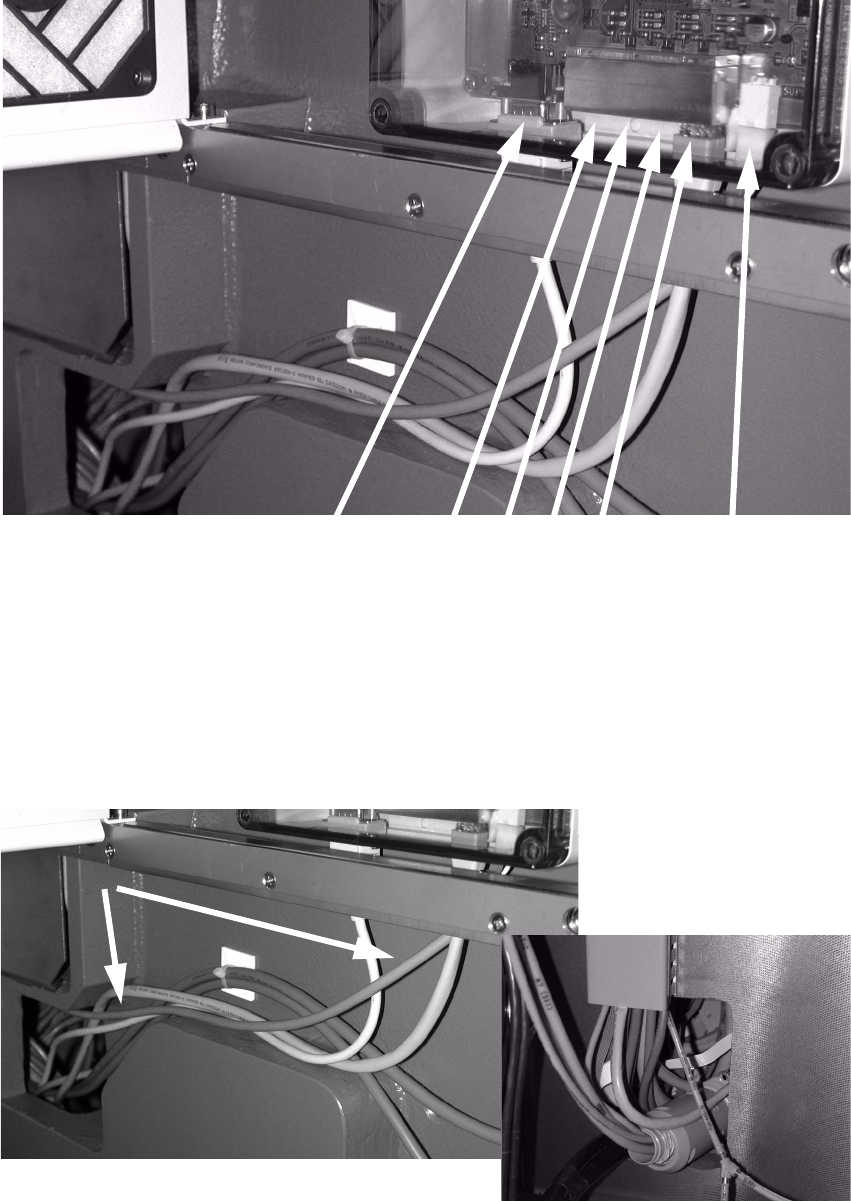 : Verlegen Sie die sechs Kabel wie im Bild oben gezeigt in die Öffnung im Maschinenständer.