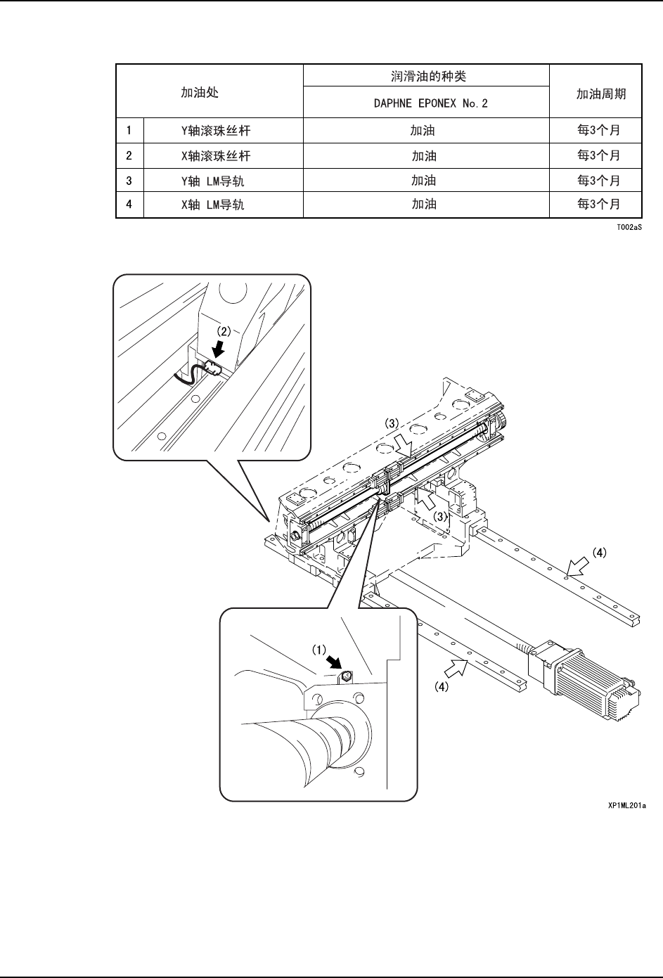 4. 维修保养 MEC-XP143-3.0S 42 XP-143E 机械手册 4.2.5 XY 机械手加油处 插图内的箭头表示加油处。特别 是黑箭头为必须用润滑油枪加油的 地方。