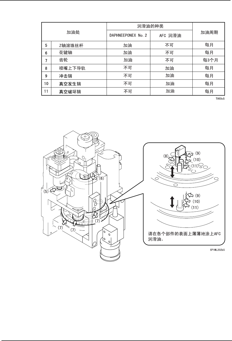 对 (8)、(9)、(10)、(11) 的详细加油方法,请参考后述的 「贴装工作头 ( 冲击销、真空发