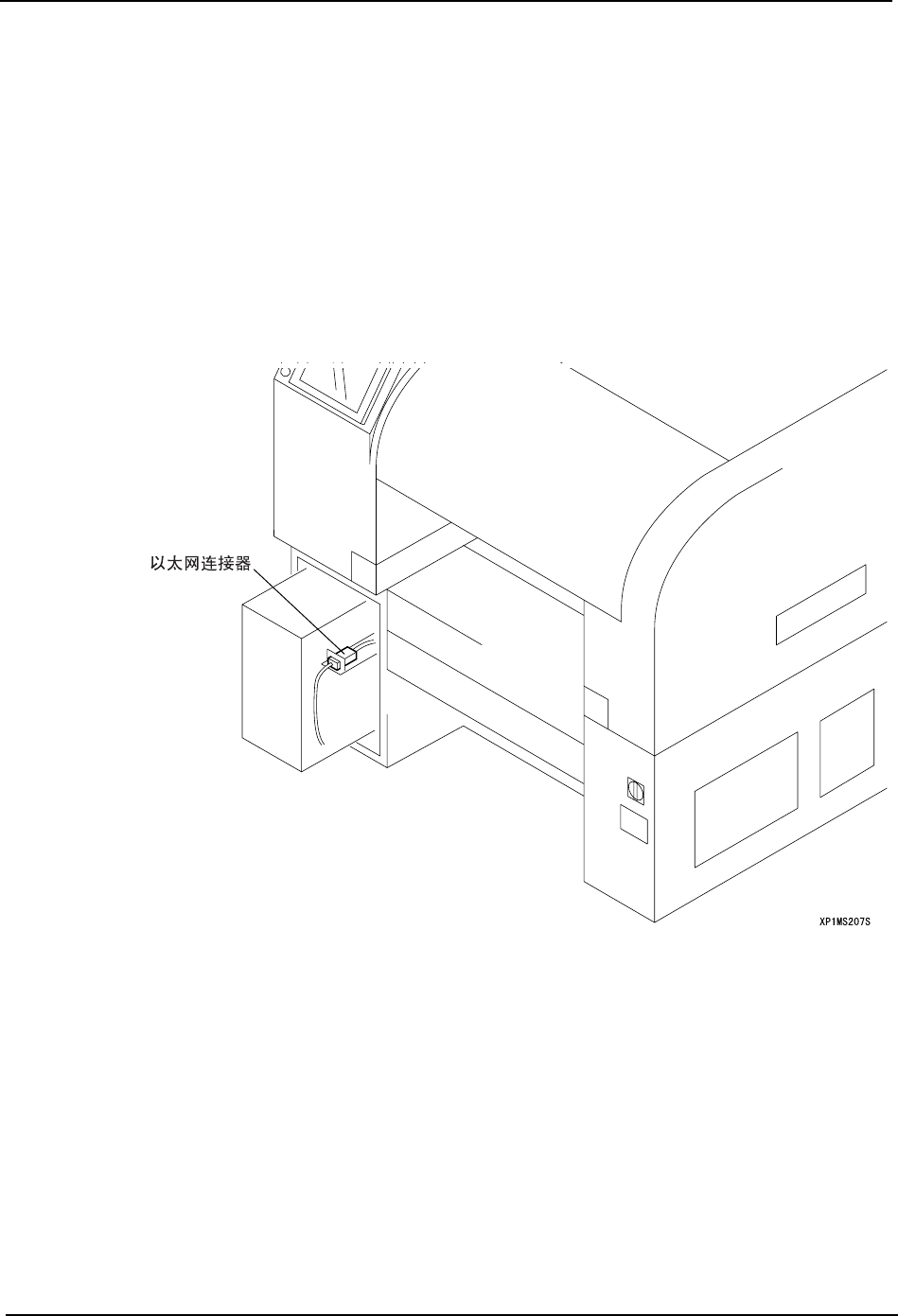1. 打开机器后面右侧的盖子,右上方有电路板搬运 I/F 信号连接器。取下盖子,连接上信