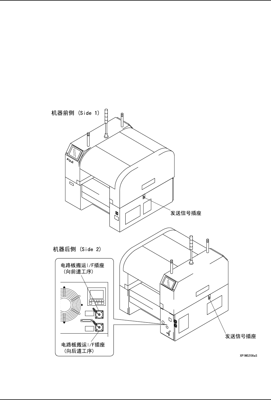 为了传输机器间电路板的交接信号,在机器之间要用电路板搬运 I/F 信号连接器和传送信号