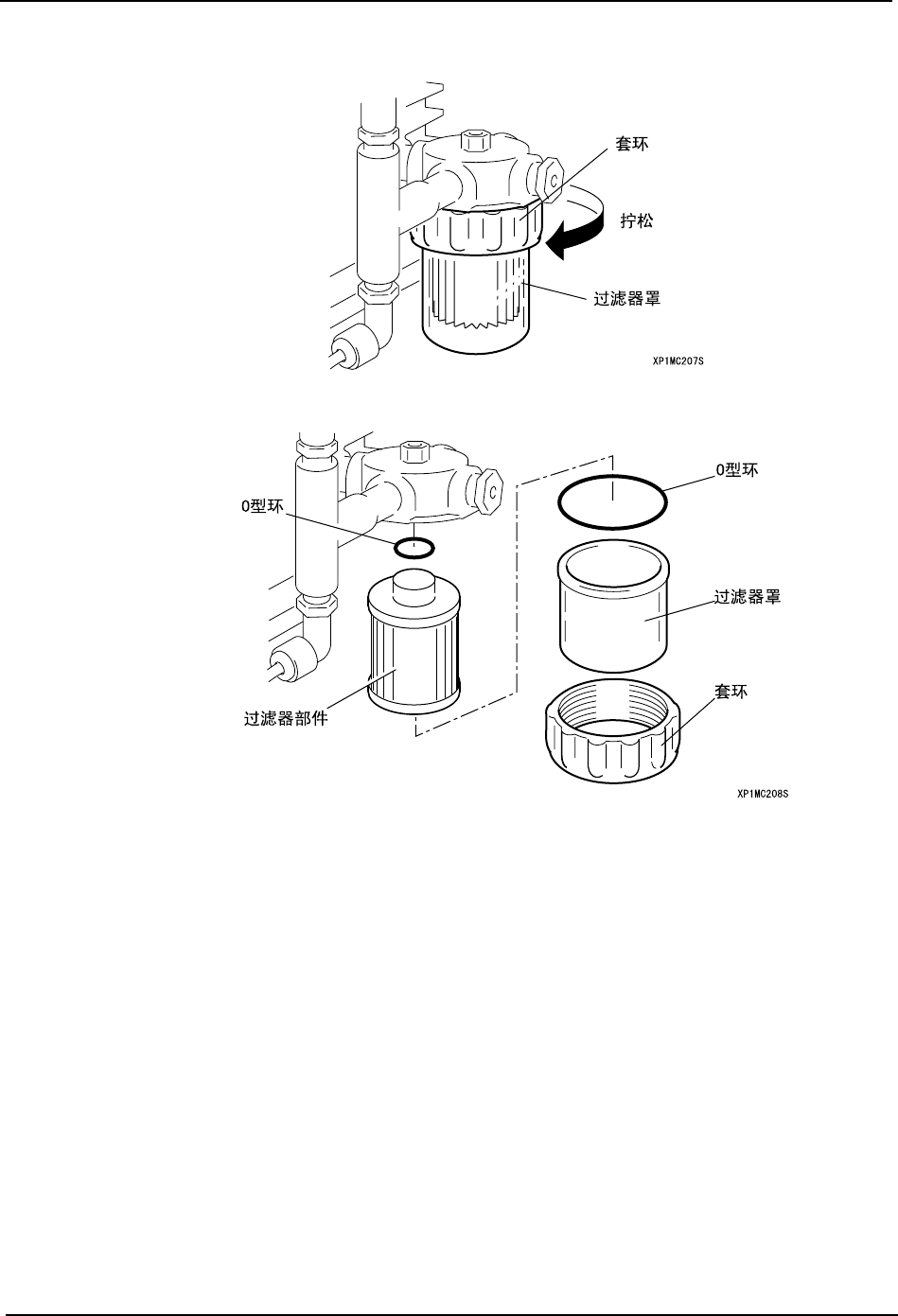 5. 拧松套环,取下套环和过滤器罩,拆下过滤器部件。