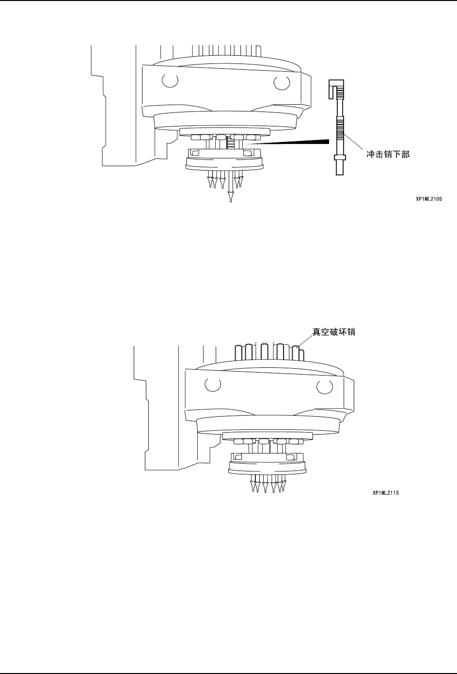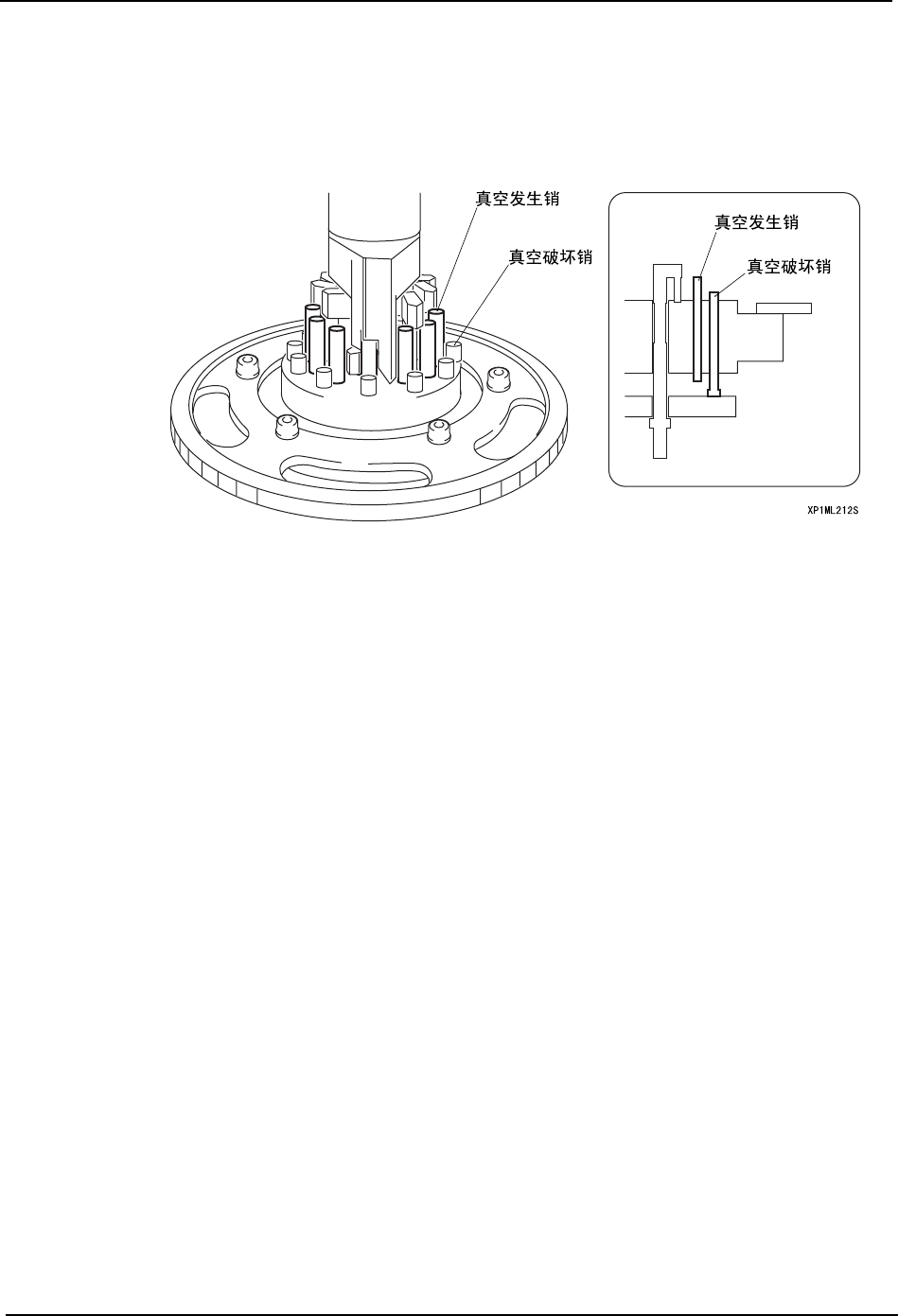 a. 将压块部分返回上方后,用手将复位盘向上按压,使所有的真空破坏销和真空发生销