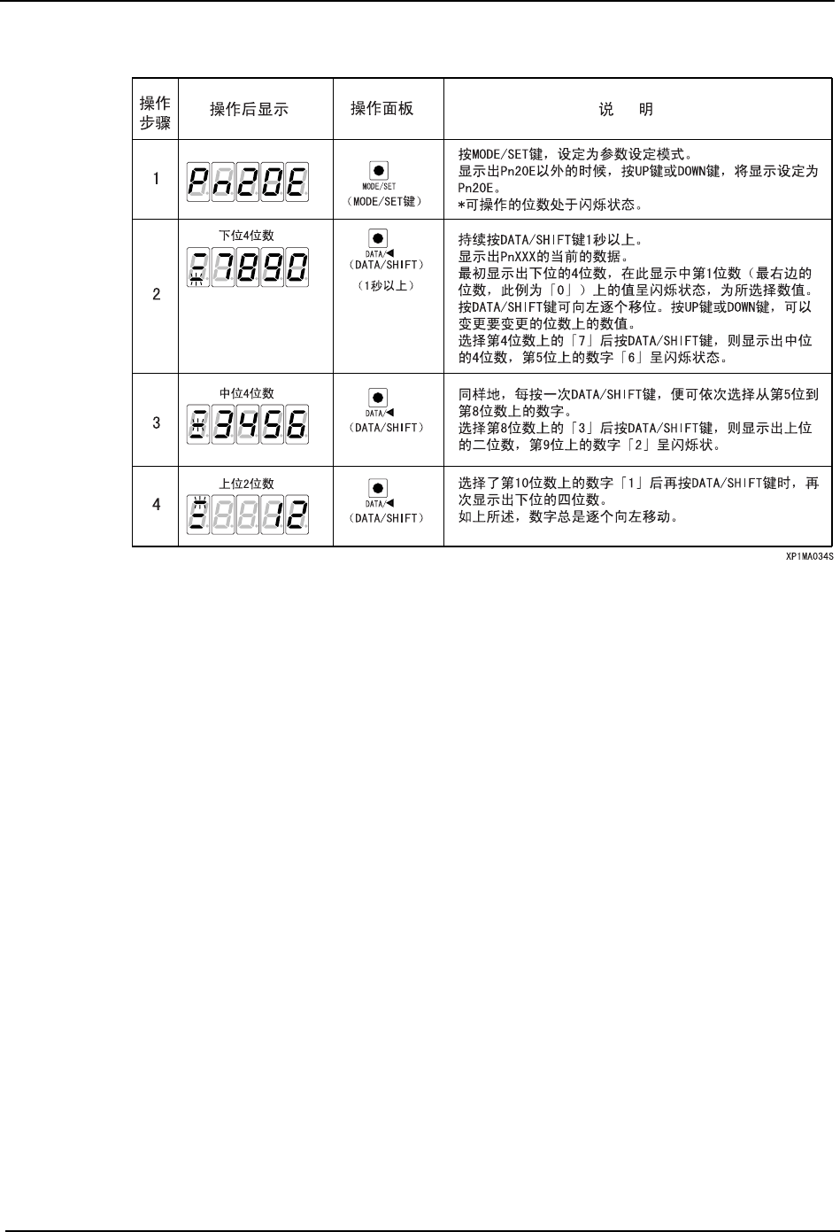 3. 以参数 「Pn20E = 1234567890」为例说明显示的方法。