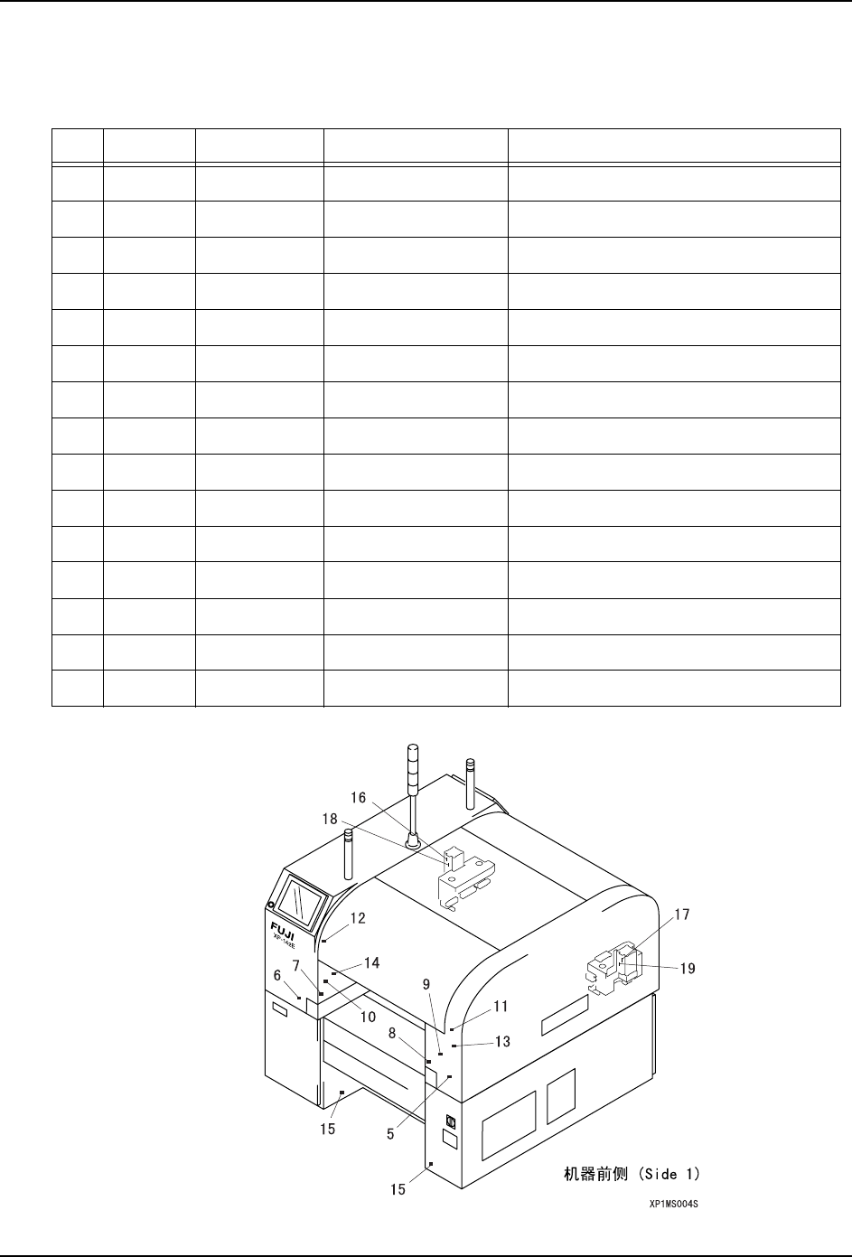 MEC-XP143-3.0S 6. 传感器位置 XP-143E 机械手册 79 6. 传感器位置 6.1 搬运轨道周围部分 No. I/O 地址 回路图号码 传感器名 内容 1 X028 T1LS-14A InStLft UpChk IN 平 台升降台上升端确认 2 X028 T1LS-14B InStLft UpChk IN 平 台升降台上升端确认 3 X01B T1LS-1 InStArriveChk IN 平 台电路板到达确认 4…