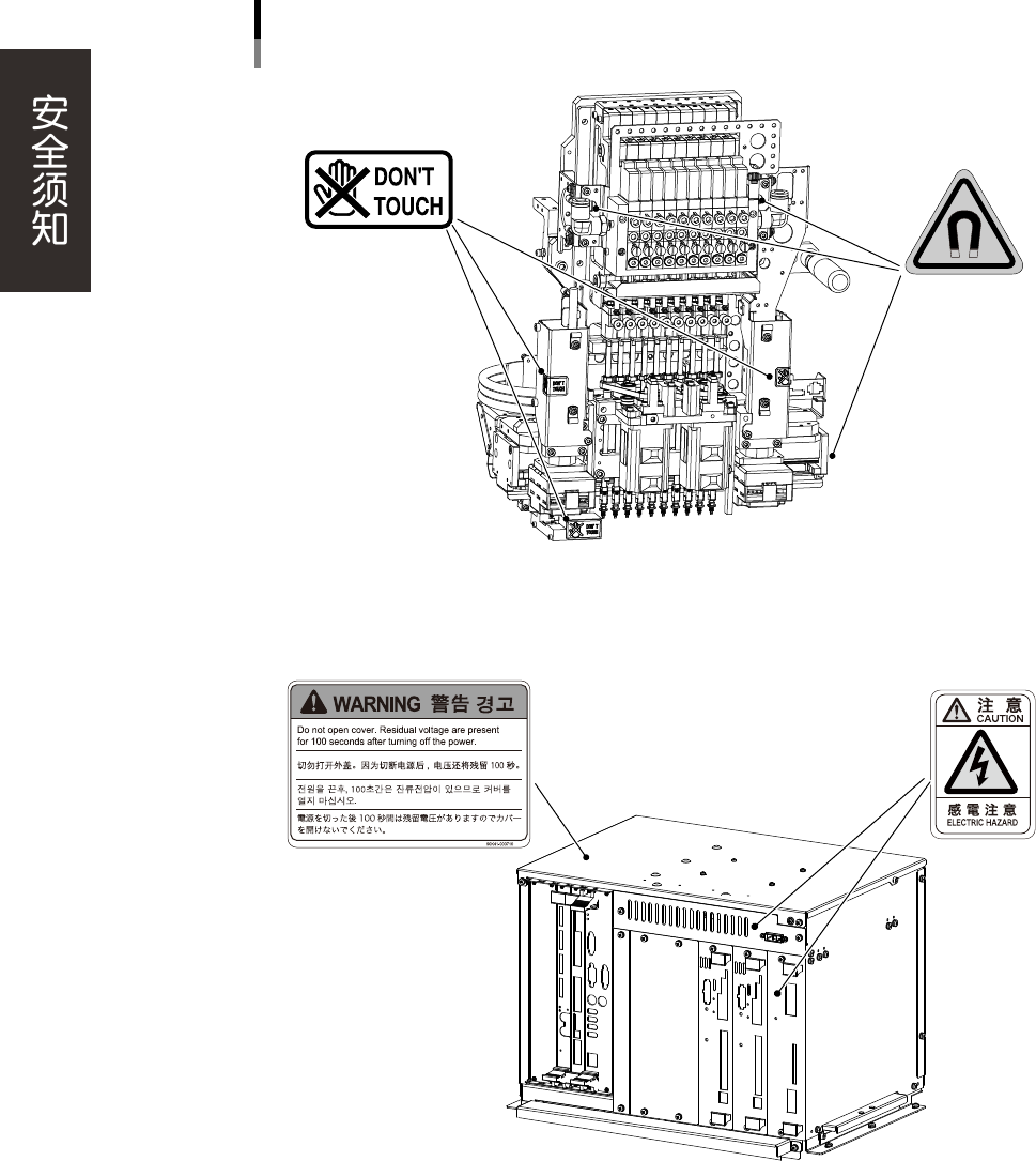 xxii ■ 标贴张贴位置 90K41-000720 警告标贴 ■ 贴装头部 ■ 相机装置 ■ 控制器顶面 ■ 控制器正面面板部 ■ SC轴线性标尺部 ■ 控制器部 95204-L2-10