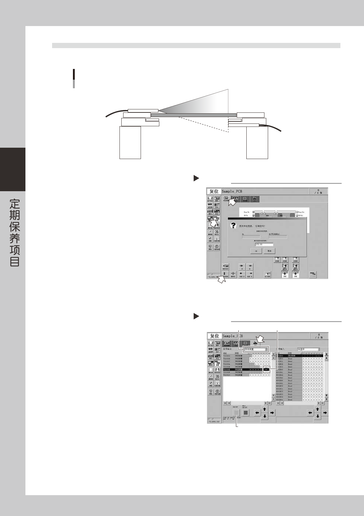 本机传送装置使用穿透型光纤传感器。调节传送宽度后,必须确认传感器仍然可以正常感应。