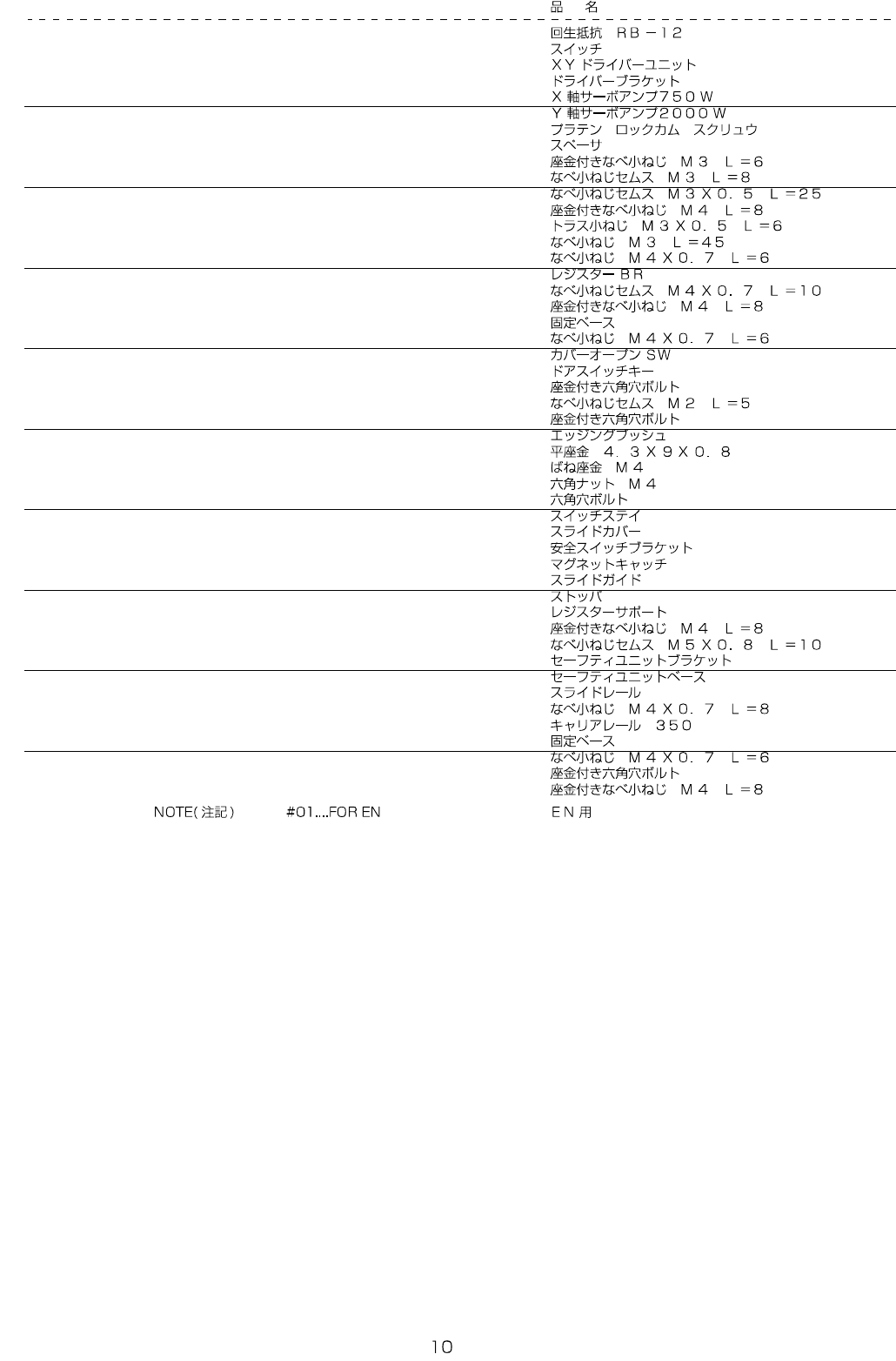 REF.NO NOTE PART NO D E S C R I P T I O N Qty