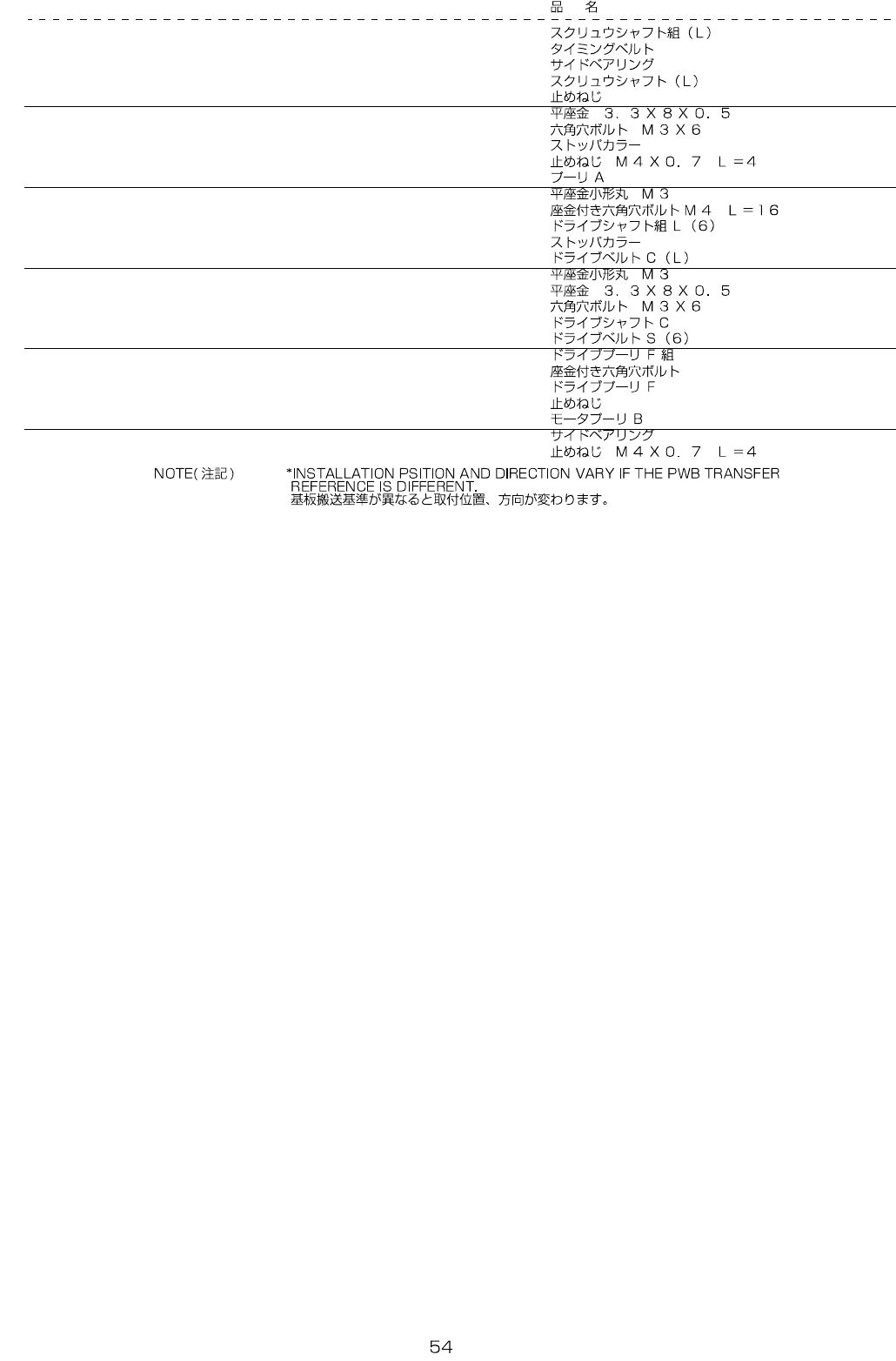 REF.NO NOTE PART NO D E S C R I P T I O N Qty
