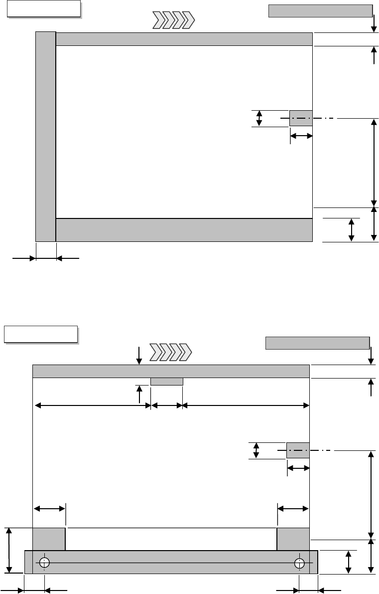 注:基板搬送方向が、反対方向(左流れ)の時は、サポートピン設置不可範囲は、上図と左右対称になります。