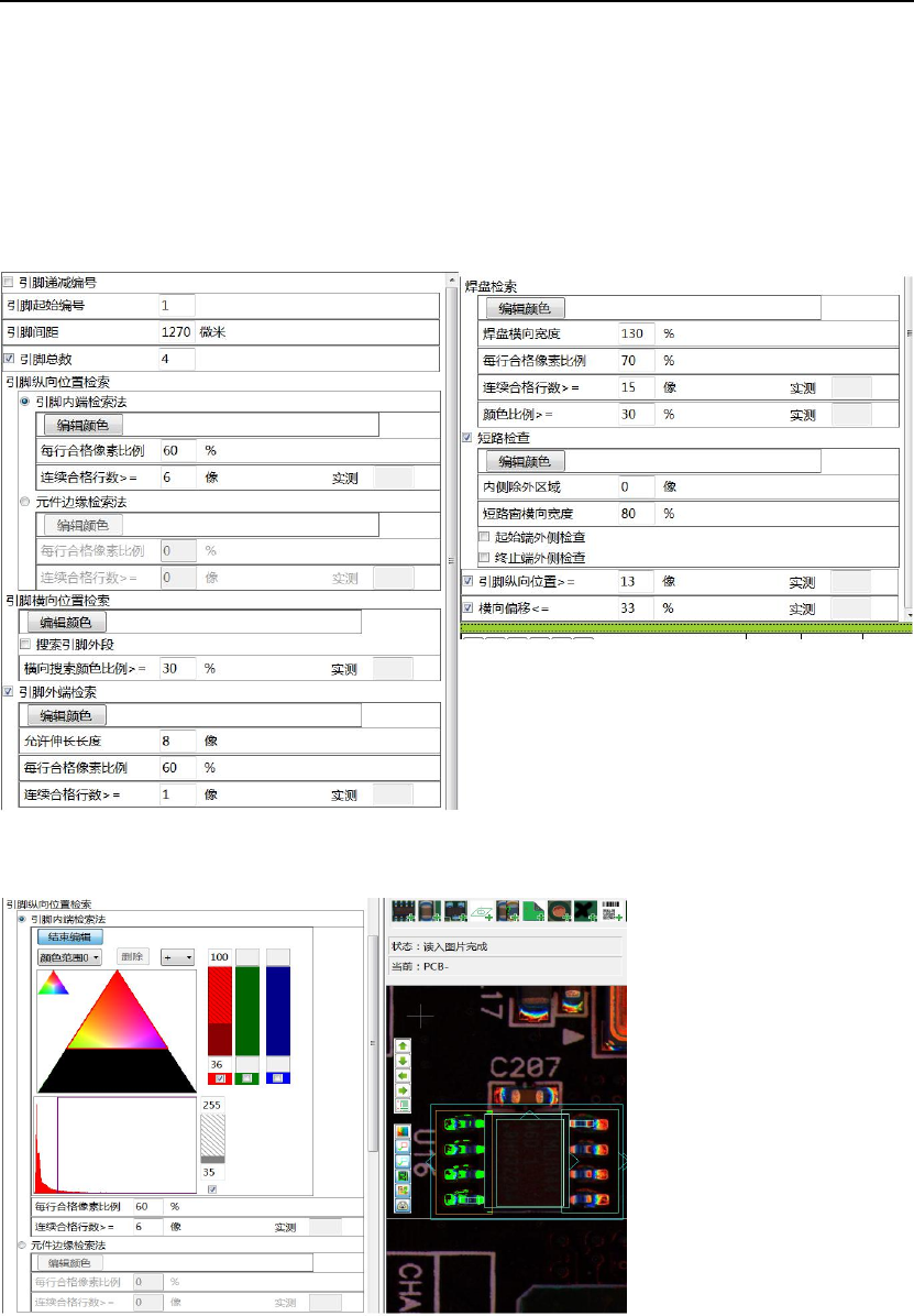 1)引脚纵向位置检索(本例选取引脚内端检索法,“颜色范围 0”抽取引脚内端的颜色)