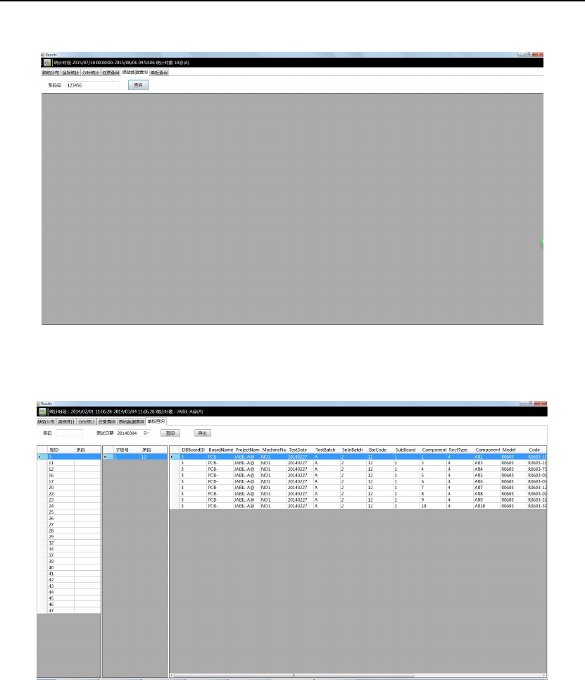 在此界面中可以条码或日期快速查询某一条码基板的测试情况或某一时间段的测试记录