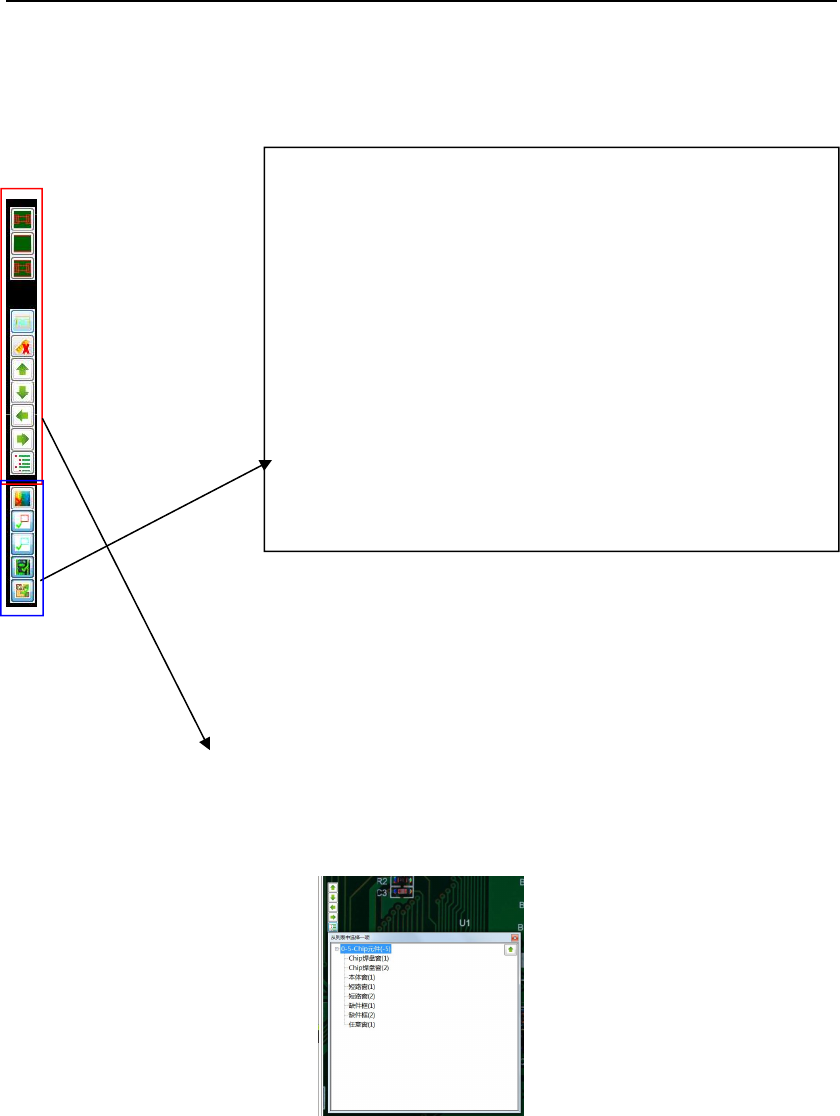 炉后 AOI 手册 26 1.2.7 检 查 窗 处 理 功 能 模 块 & 颜 色 查 看 及 区 域 锁 定 处 理 功 能 模块: 检查窗处理功能模块: 1. 标尺:点击此 按钮则会在电脑屏 幕下方显示标尺, 以便进行测量。 2. 焦点移动到父 窗口:选中一窗口 后,点此按扭会使 当前焦点移动到最 上层窗口。 3. 焦点移动到第 一子窗口:选中一 窗口后,点此按扭 会使当前焦点移动 到第一个子窗口。 4. 焦点移动到前 一…