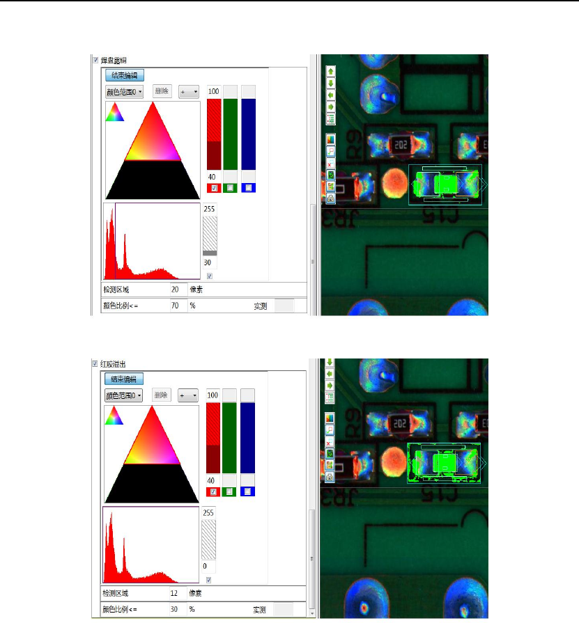 4)红胶溢出检查颜色抽取(“颜色范围 0”抽取红色)