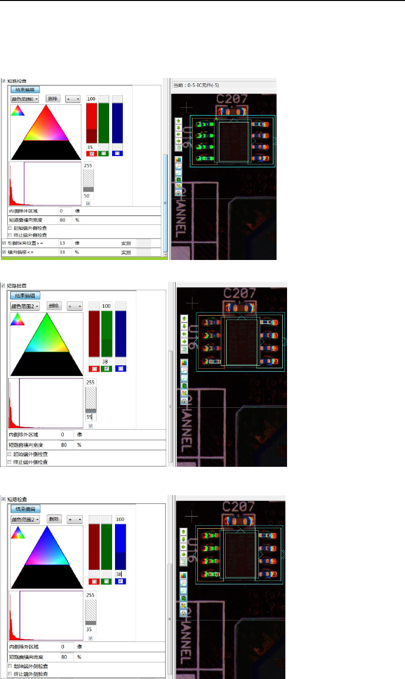 1.对于区域外端如选焊锡外端时,可对焊锡外端抽取颜色(焊盘开焊时的蓝、绿色)及亮度。