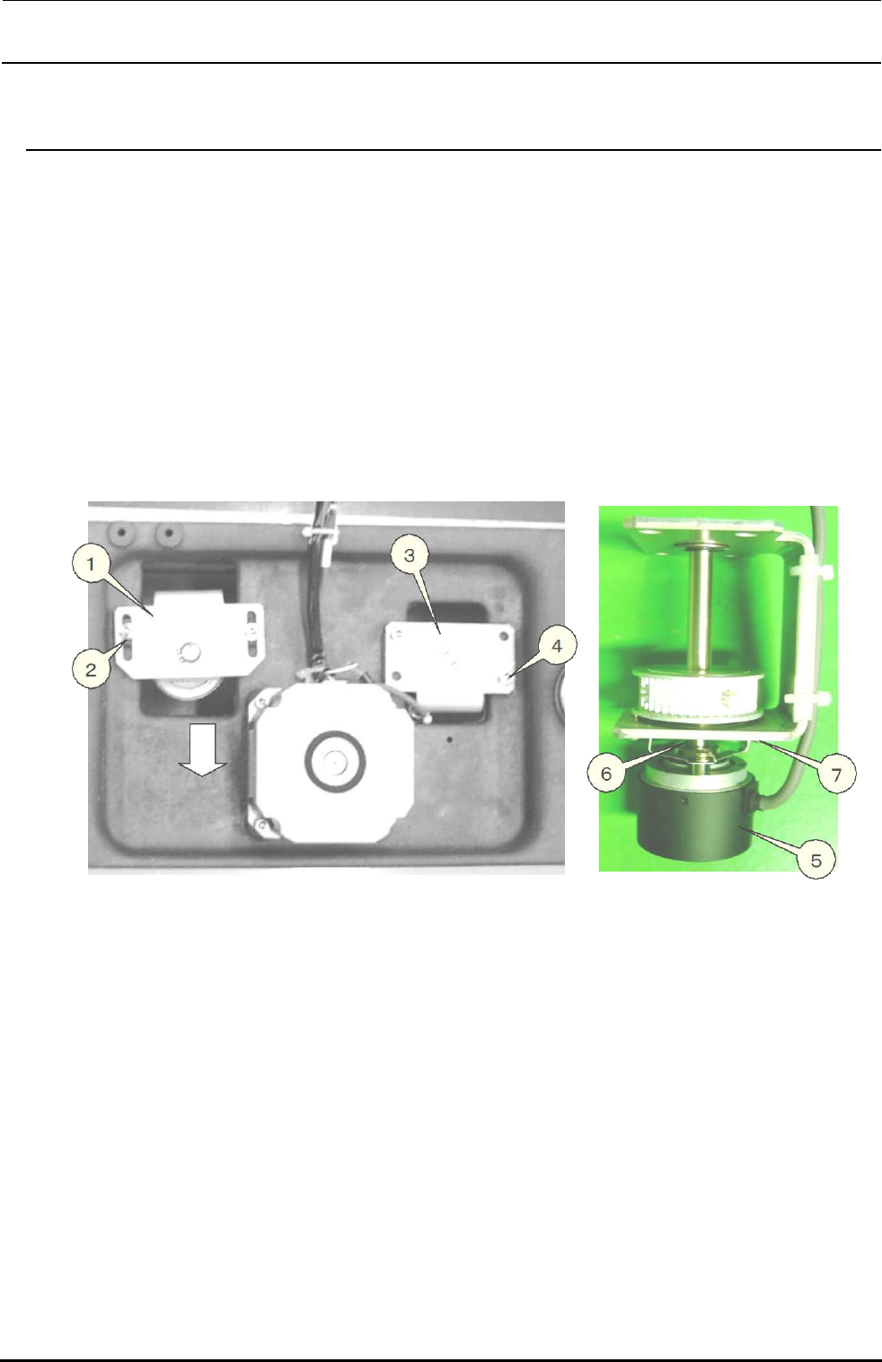Rev 2.2 维修调整要领书 5- 16 . 支承台 ENC 的更换 1) 与 5-15. 支承台马达更换一样,卸下支承台 。 2) 拧松 ② 固定螺丝,向箭头方向移动 ① 钮矩架组件,松开同步皮带的张力 。 3) 拧松 ④ 固定螺丝,取出 ③ 调节器架组件 。 4) 拧松 ③SL6030692TN 盖 。 5) 拧松调节器的附属螺丝 (⑥ 圆螺丝 ) 和 ⑦ 固定螺丝,卸下 ⑤ 调节器 。 4) 按照 (3)~(1) 的程序进行组装…