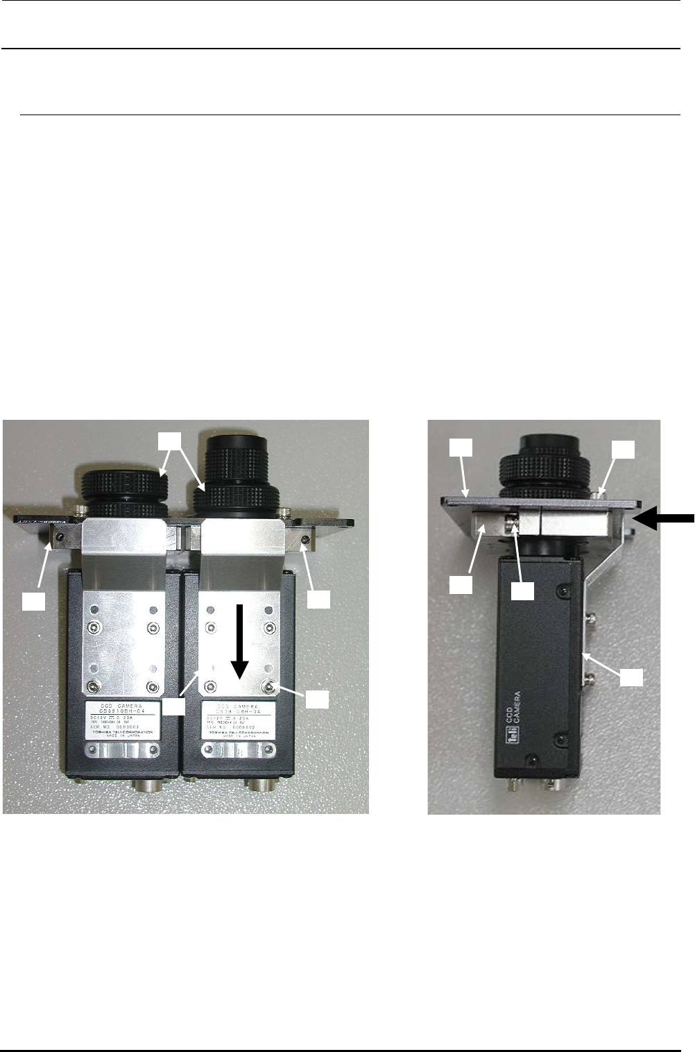 2) 请把⑦相机支架向↓记号方向压紧,再旋紧⑥相机支架制动螺丝。螺丝上要涂粘结剂 LOCTITE242。
