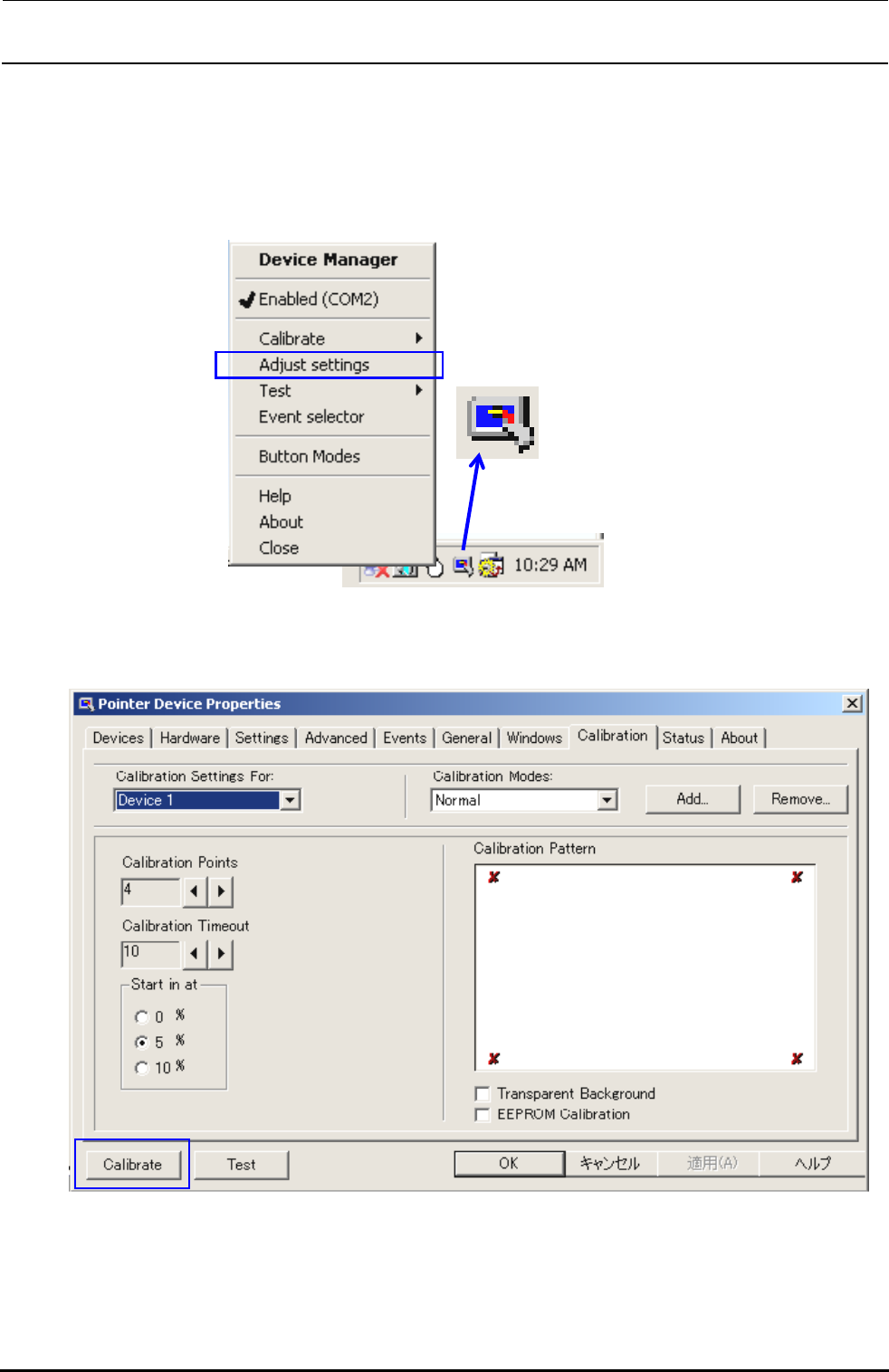 2) 启动后,会显示下图所示的窗口。点击该窗口左下方的“Calibrate”。