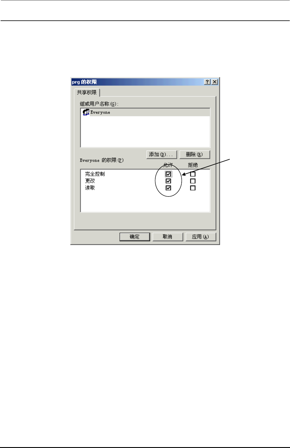 7)在上述画面中,请选择③<权限(P)>按钮,以显示「prg 的权限」对话框。这里,在 everyone 的权